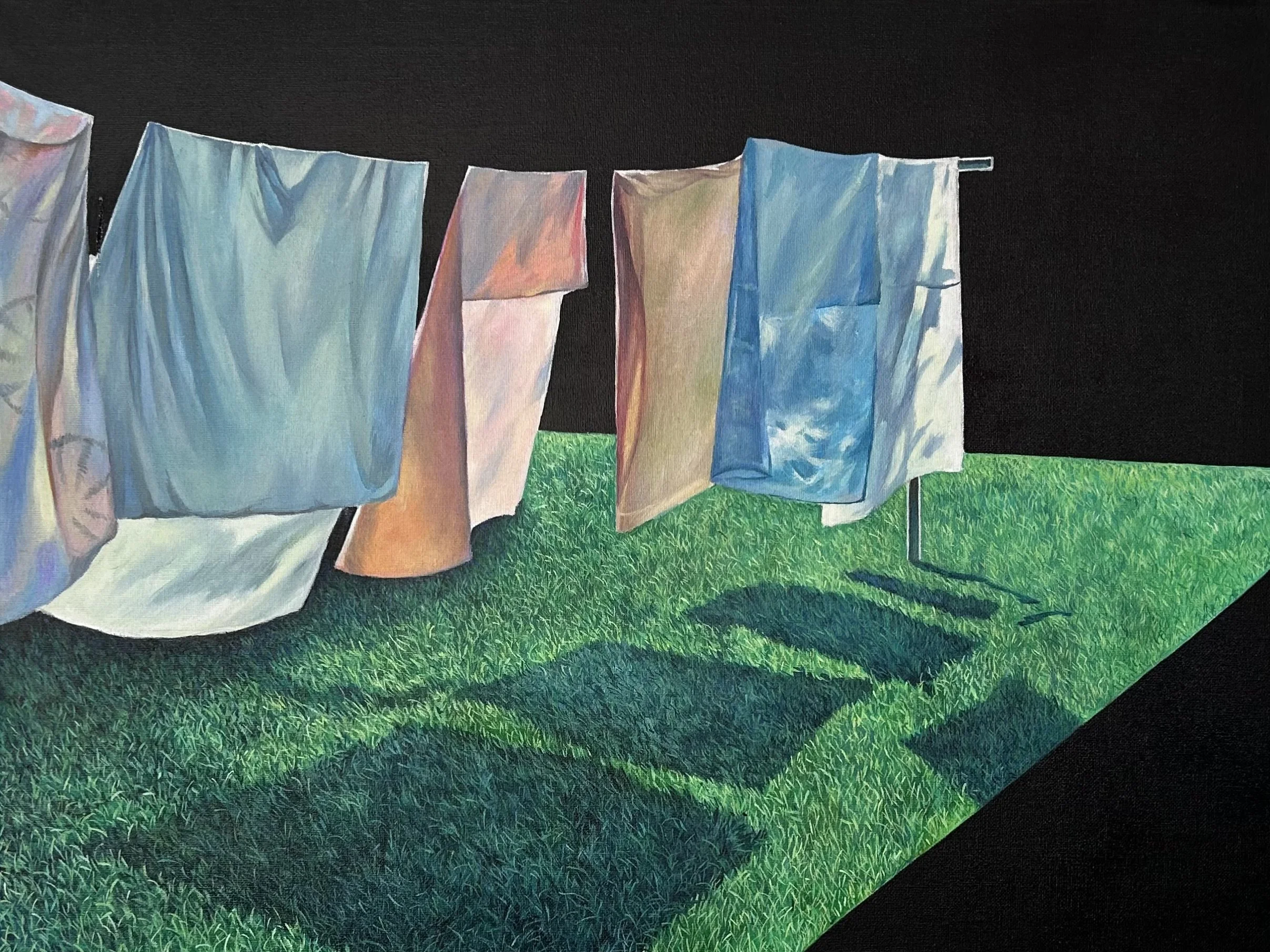Echoing the emotional solitude of Edward Hopper yet distinctly her own, Hasan’s work invites viewers into a space of poetic contemplation. Her canvases function like a camera obscura: intimate, mysterious, and attuned to the subtle boundary between reality and imagination.